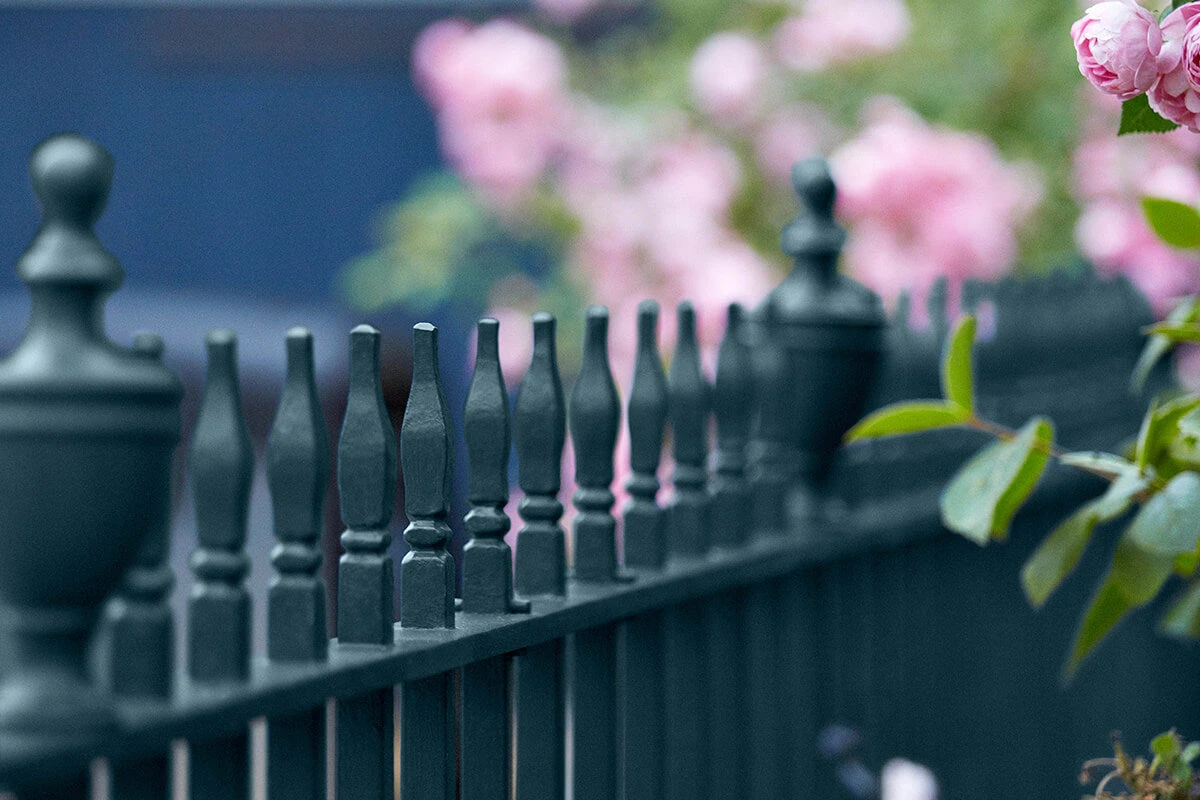 Colour designed by Jinny Blom. A rich deep midnight blue like the sudden flash of a starling wing in flight. The colour was first inspired by the great murmurations above the rooftops of Rome. Then by the history of cobalt glass that was ground into smalt– a pigment used to fuse the deep blue colour onto old wrought iron gates. This deep rich blue is essential in the colour lexicon we use. An excellent estate colour for gates and doors and accents on outbuildings.